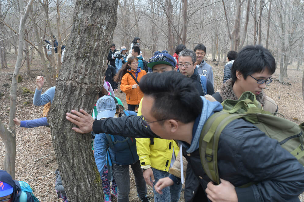 実際に手で木に触れ温度を感じる事で、山を形成する一本一本の木の命を感じる事が出来ました。
