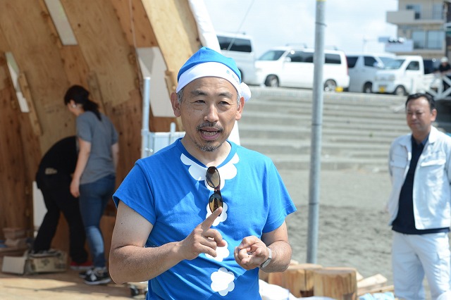 みんなの汗が入り、この「釘のない海の家」を通じて、海(自然)について色々な「想像」を膨らませていただき、目の前にある自然環境を「自分ごと」として向き合ってもらえるキッカケとなり、海がキレイになればと願いを込めているからです。