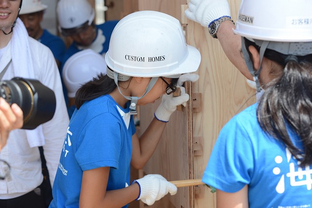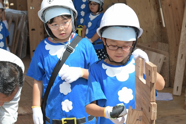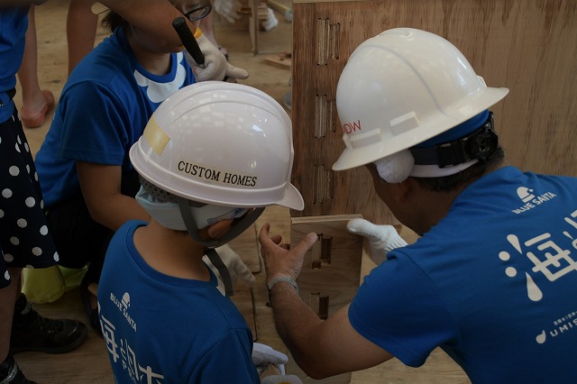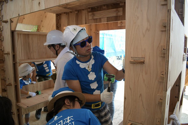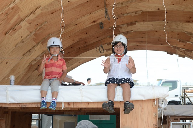 最後の1つの小屋を作っていく中で、高い場所は、大人がつくり、ちびっ子が手の届く低い場所は、大人が手を差し伸べながら作っていく姿には、感動しました。
